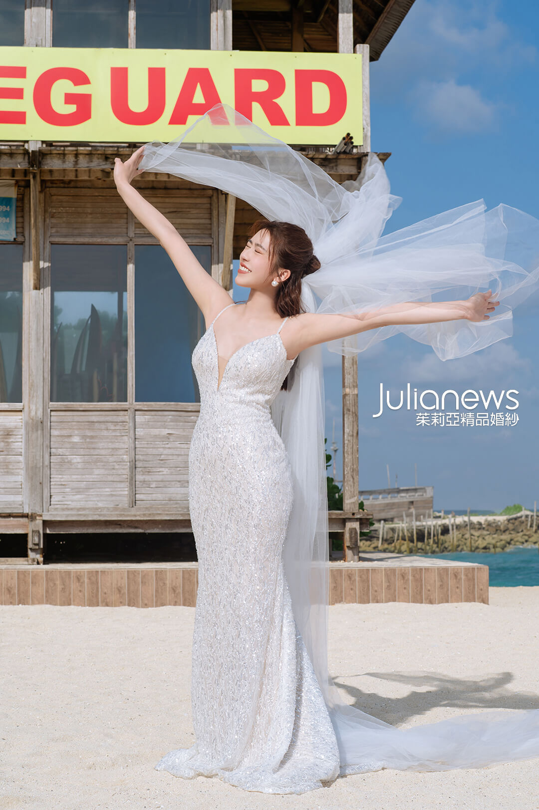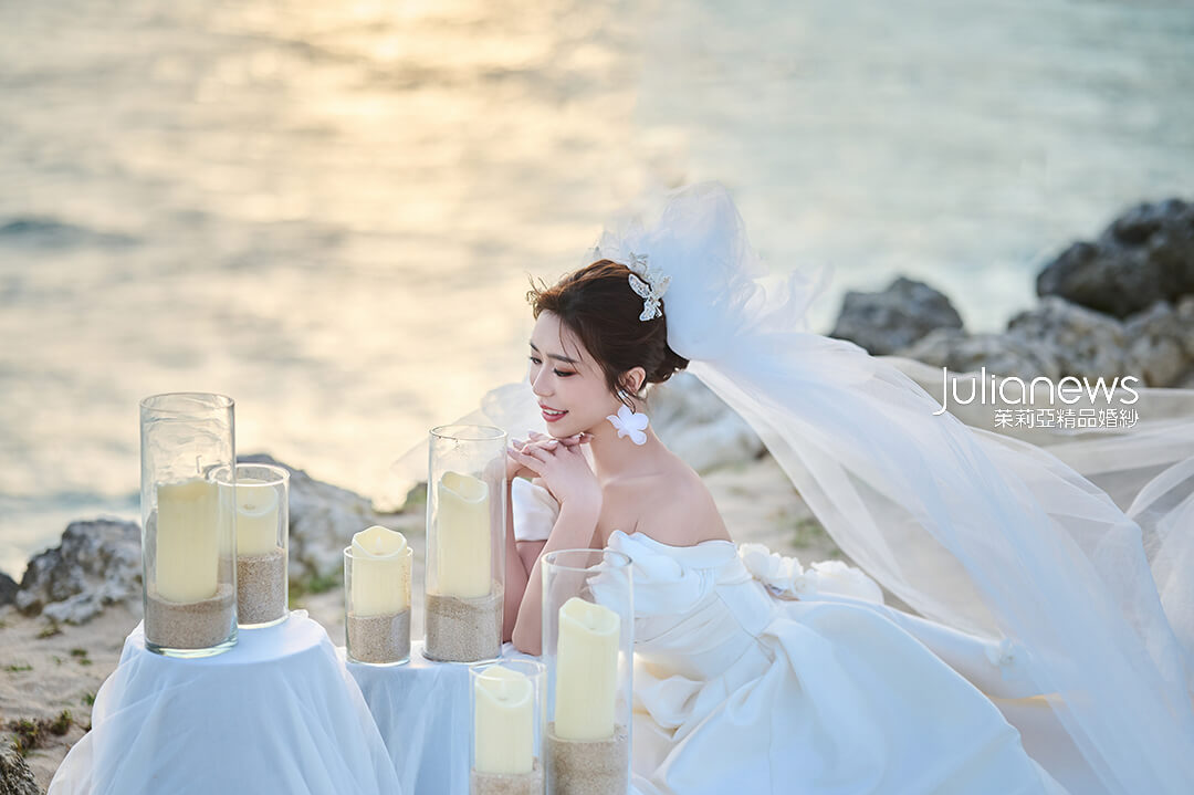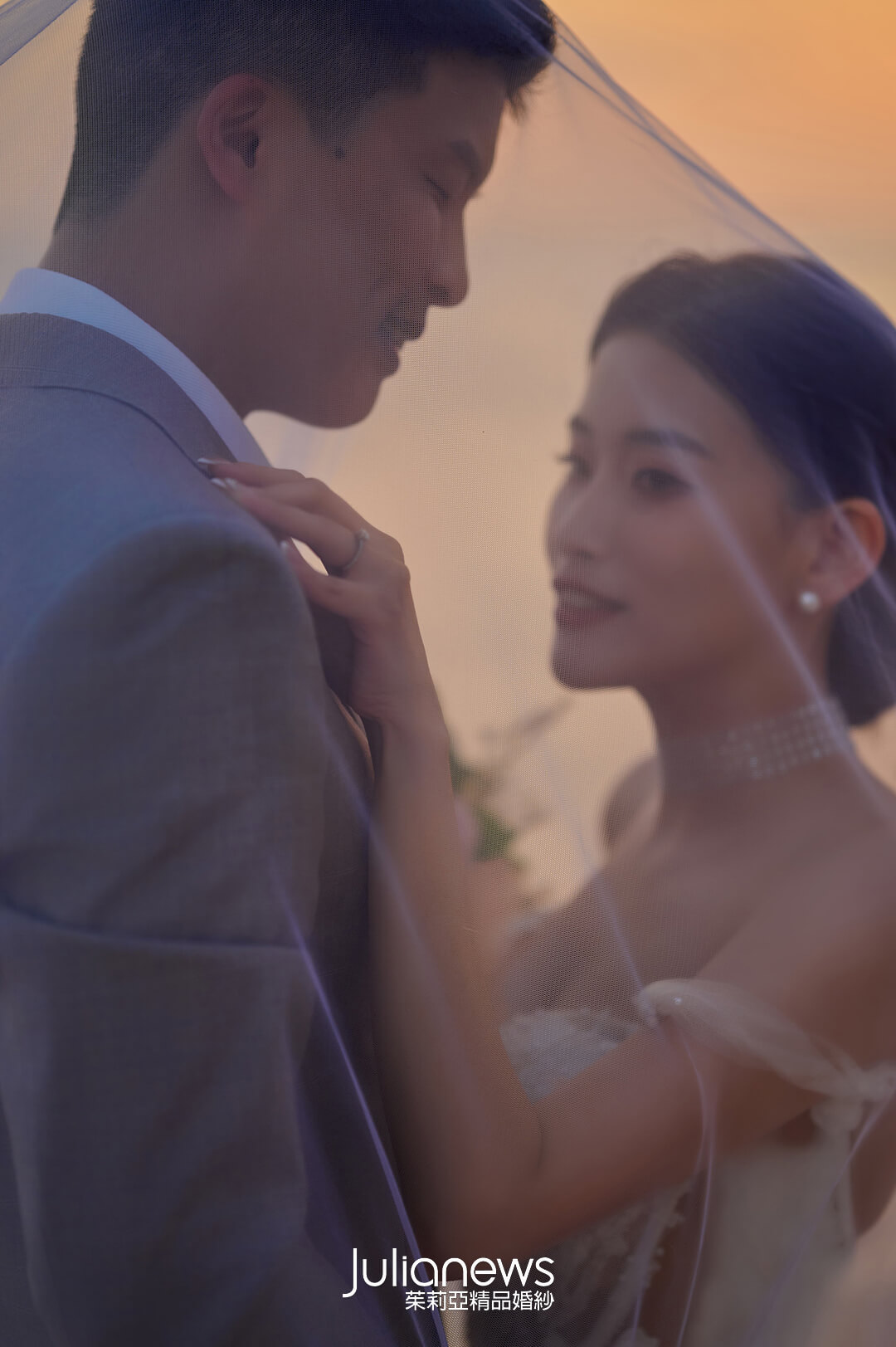 當海浪輕輕拍上岸邊、微風掠過白紗的瞬間——