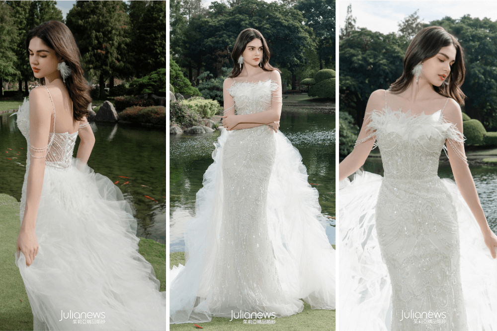 在婚紗的每一個細節裡,閃爍的光點成為主角。