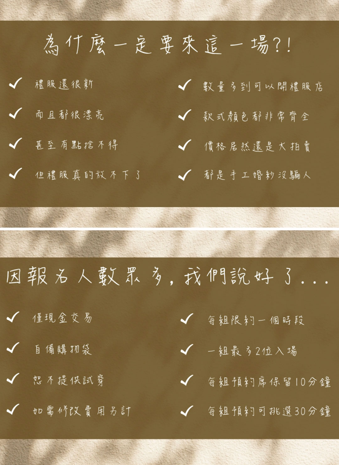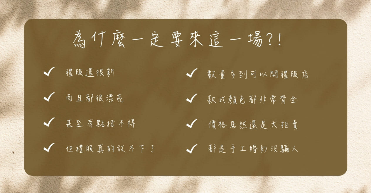 中部最大場!茱莉亞二手禮服拍賣會 SALE