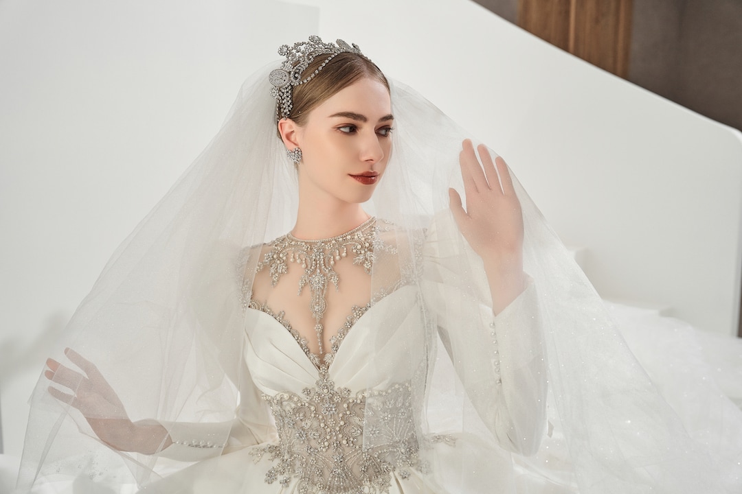 ▼ 精緻銀鑽公主泡泡袖設計款禮服
